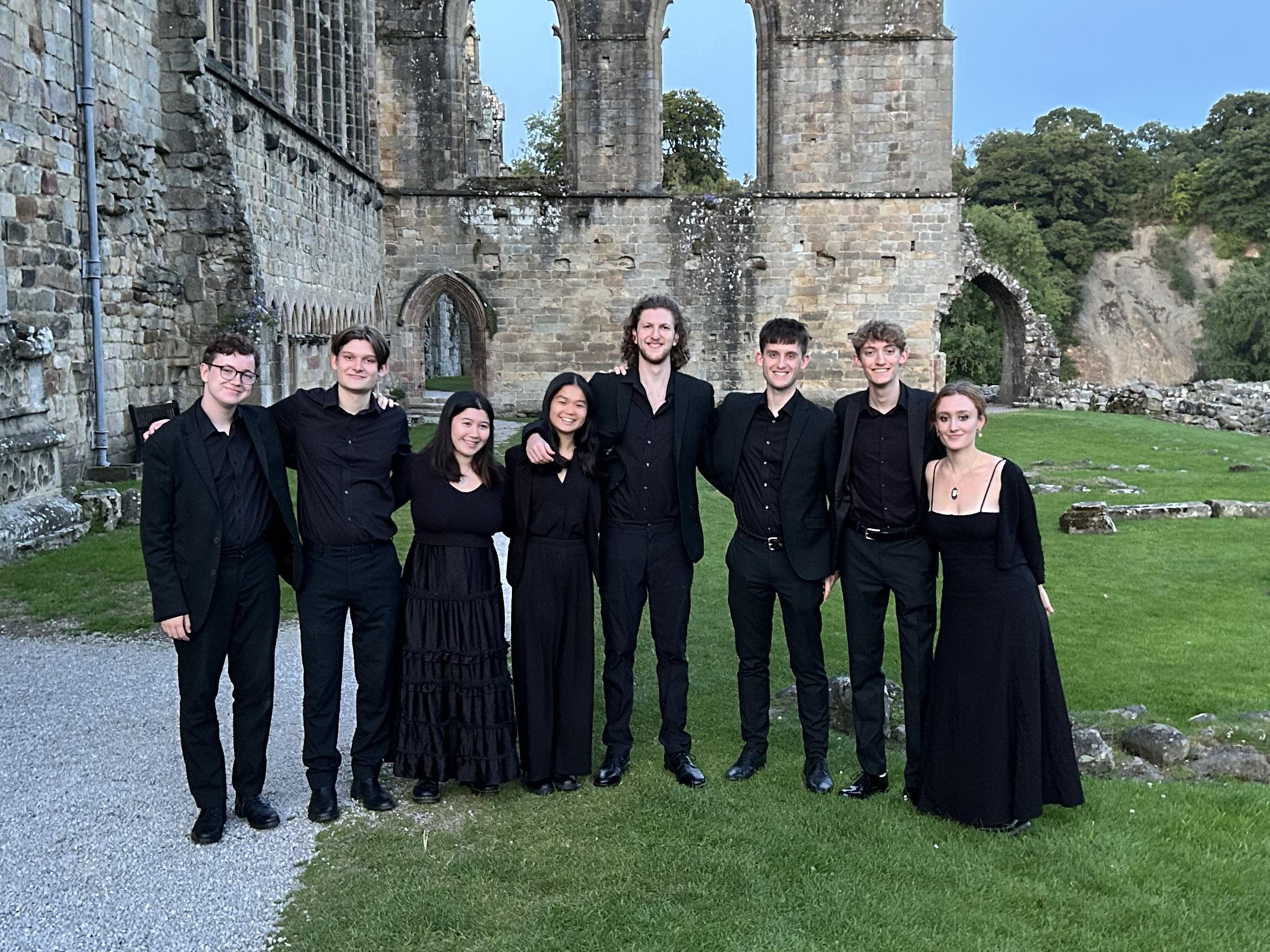 In the Summer of 2025, the group performed as part of the Brecon Choir Festival, presenting a concert celebrating 500 years since the birth of Palestrina. They then continued on a tour to Bridgnorth, Bolton Abbey, and Burton Leonard, performing their programme “The Art of Imitation”, a concert centered around the parody mass genre. Next, the group was joined by instrumentalists from the University of Cambridge to give the premier performance of Jeremy Thurlow’s “Earthquake in the Soul”, a work exploring three of Hildegard’s spiritual visions, based on the ‘Earthquake’ mass attributed to Brumel.