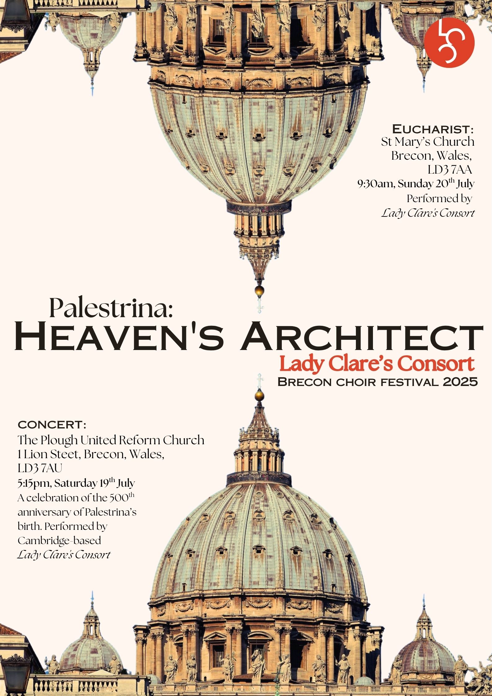 A celebration of the 500th anniversary of Palestrina’s birth presented by renaissance specialists Lady Clare’s Consort.